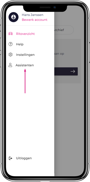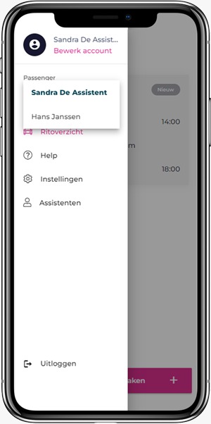 - De assistent kan inloggen en ritten boeken op jouw naam
