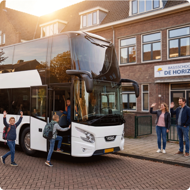 Een touringcar van DriveMe wordt het meest gebruikt voor schoolreisjes, meerdaagse trips naar binnen- en buitenland en transfers van en naar festivals.